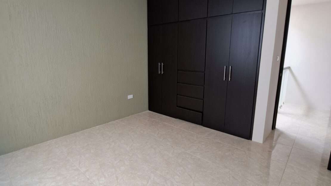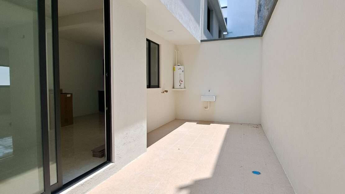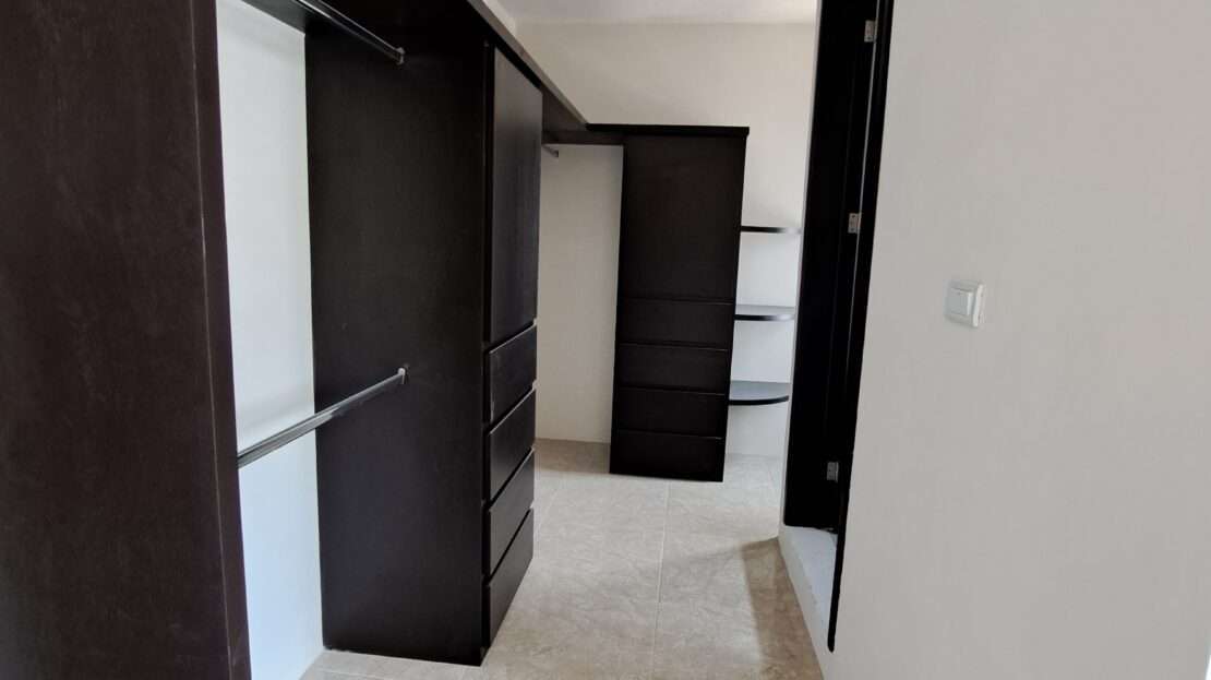 Subiendo a la planta alta, se encuentran 3 recámaras, la principal con un práctico vestidor y su baño propio, mientras que las otras dos recámaras comparten un baño completo. Cada detalle ha sido cuidado, desde los closets de piso a techo hasta los canceles de baño y la preparación para aires acondicionados. La propiedad cuenta con calentador, cisterna de 3000 litros, reja, interfon, y contratos de agua y luz ya establecidos. Con un terreno de 7×15 metros y 150 m² de construcción, esta casa es la combinación perfecta de confort y estilo.