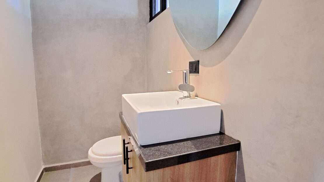 Un atractivo único de la casa es su amplio sótano, ideal como cuarto de juegos, que incluye una ventana con vista al jardín, una barra con tarja y un medio baño.