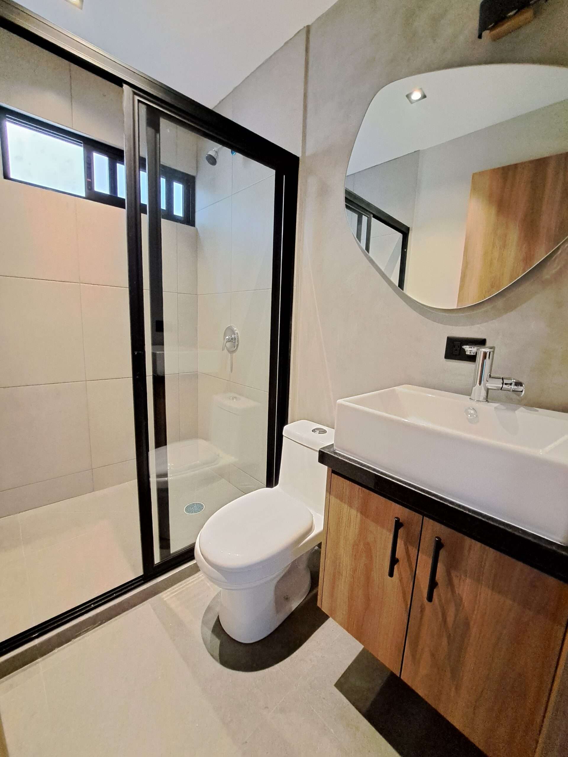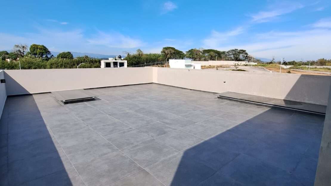 El último nivel es un espacio versátil que ofrece una habitación de huéspedes, un cuarto de TV, un baño completo y un amplio roof garden, perfecto para entretenimiento y relajación al aire libre.