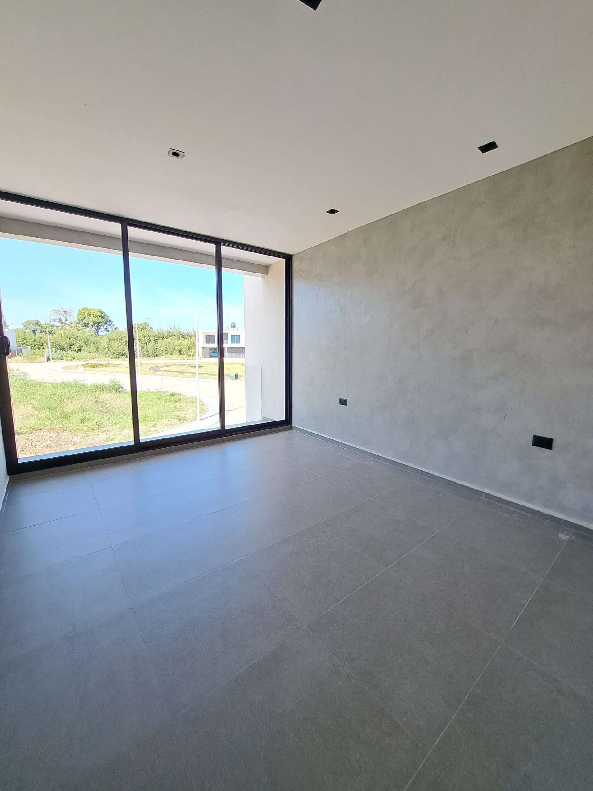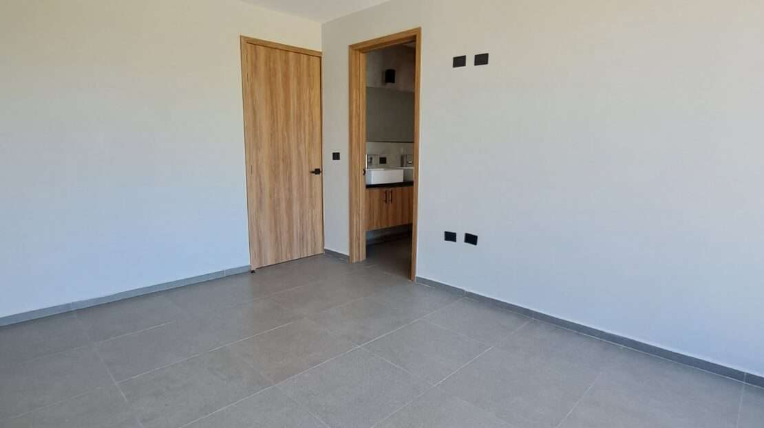 La propiedad destaca por su diseño arquitectónico que incluye una planta baja con cochera techada para dos autos, una sala y comedor de doble altura que aportan una sensación de amplitud y elegancia, y una cocina integral equipada con campana y barra de granito. También cuenta con un medio baño y un práctico pasillo de servicio.