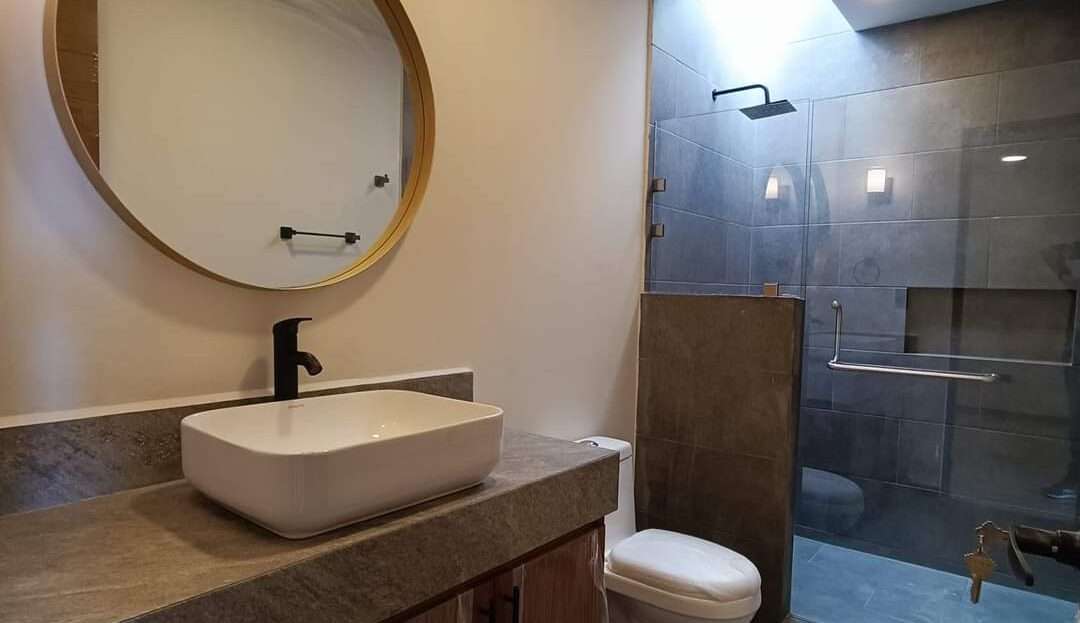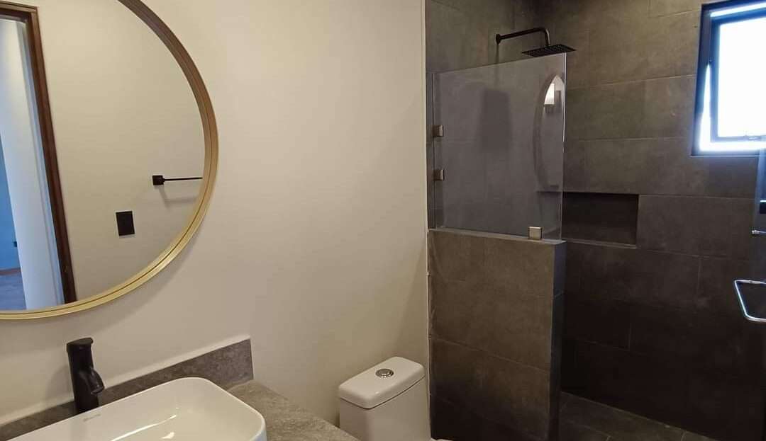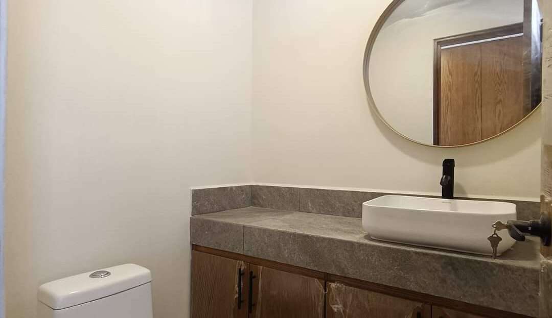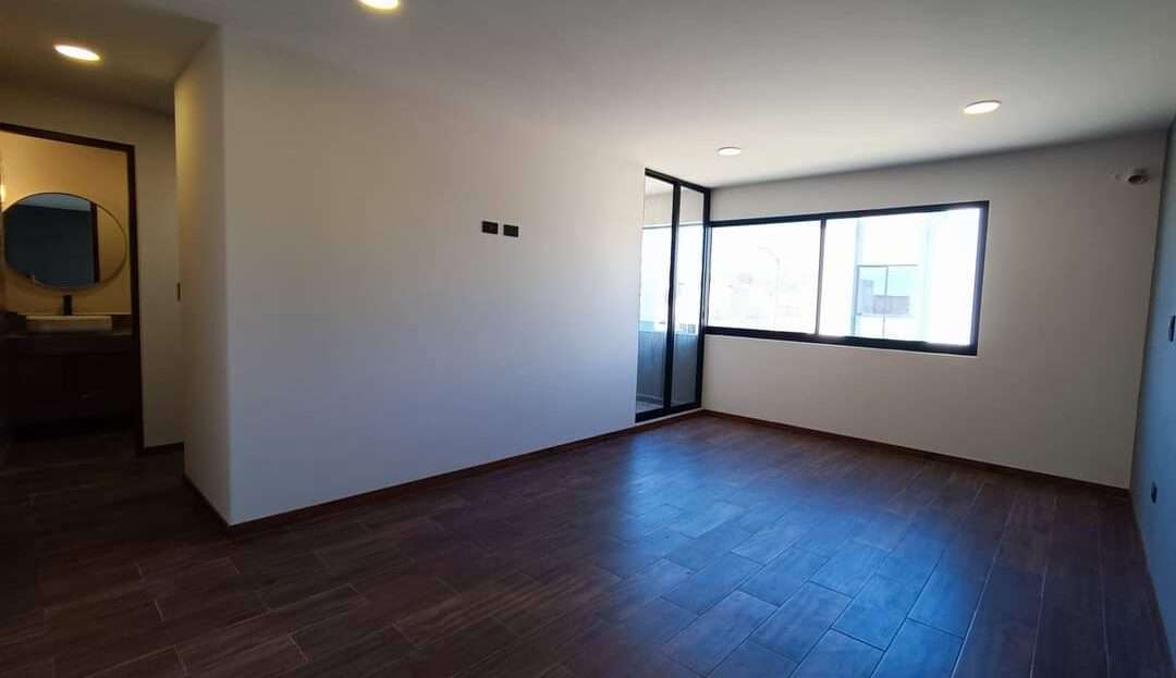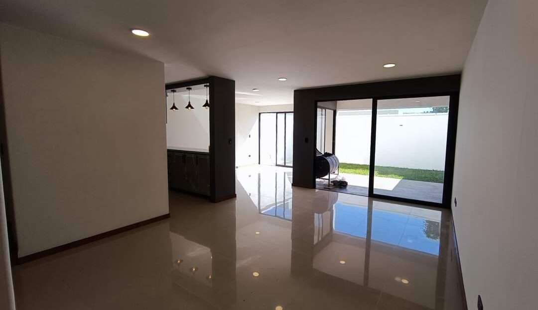 La planta alta alberga la recámara principal con una pequeña terraza, vestidor y baño completo con cancelería de cristal templado. Dos recámaras secundarias con closet comparten una terraza con vistas al jardín. Complementa esta planta una sala de TV, closet de blancos y un baño completo.