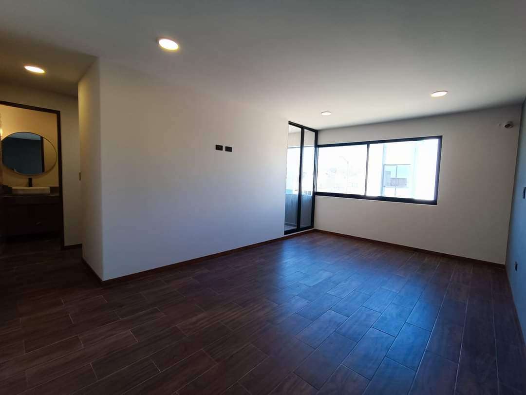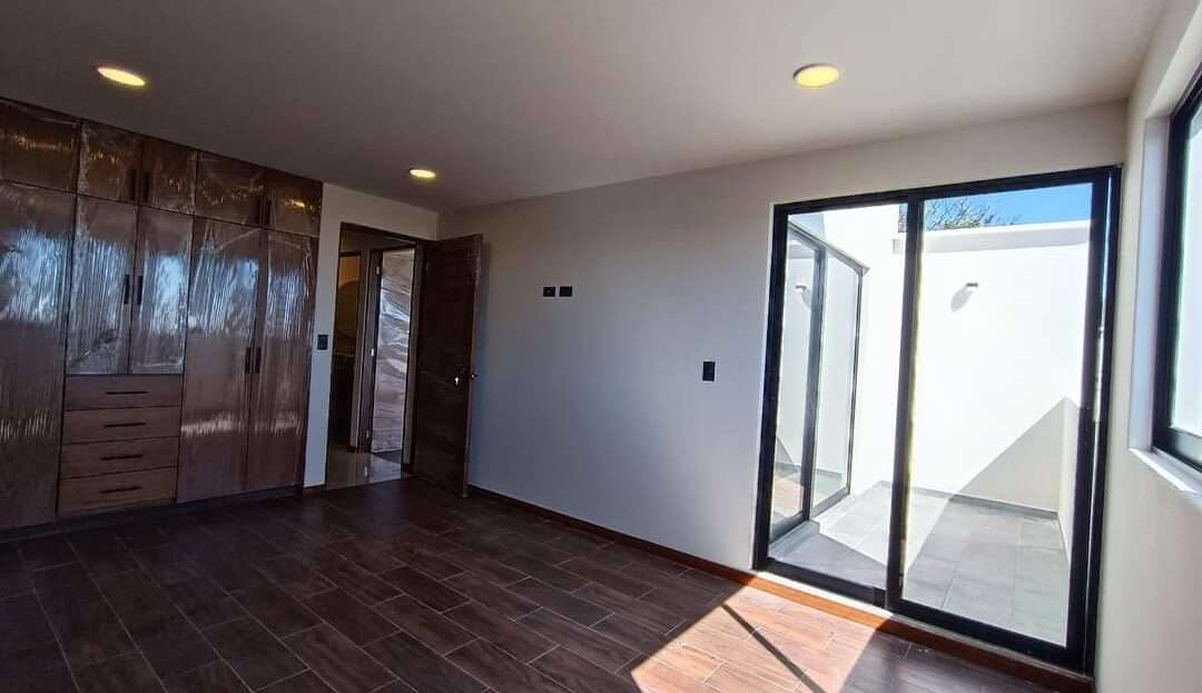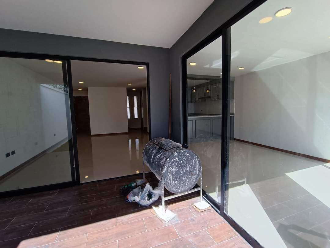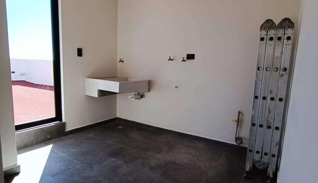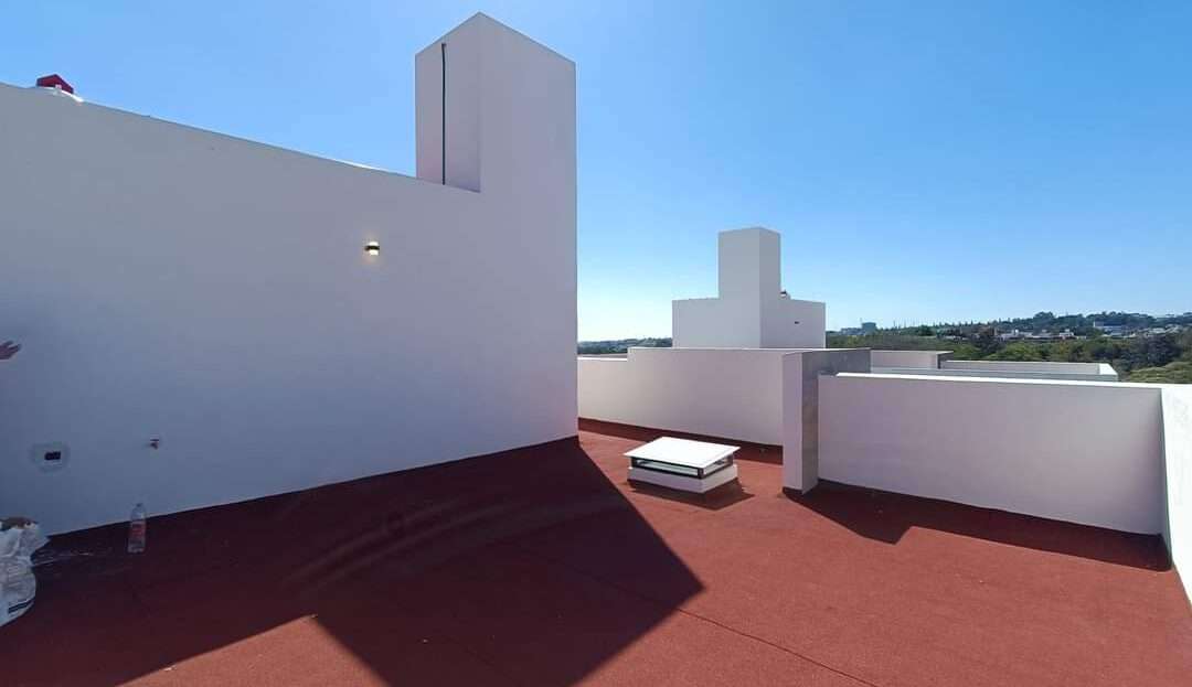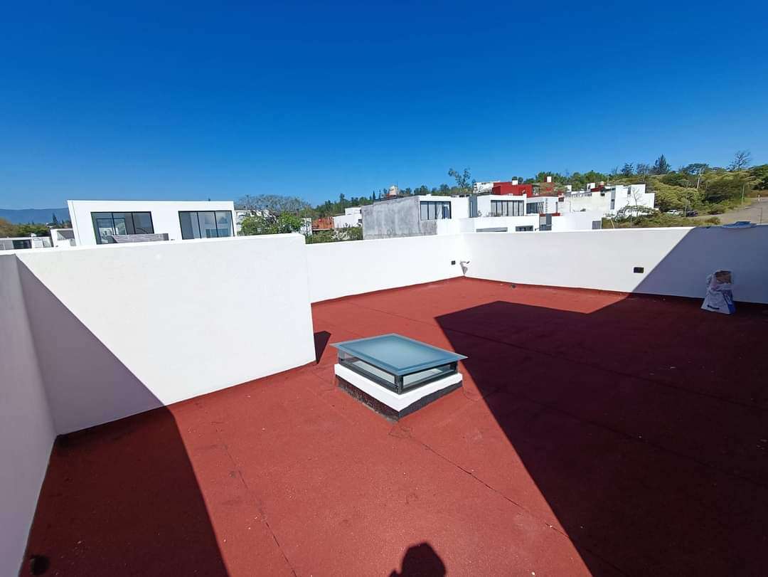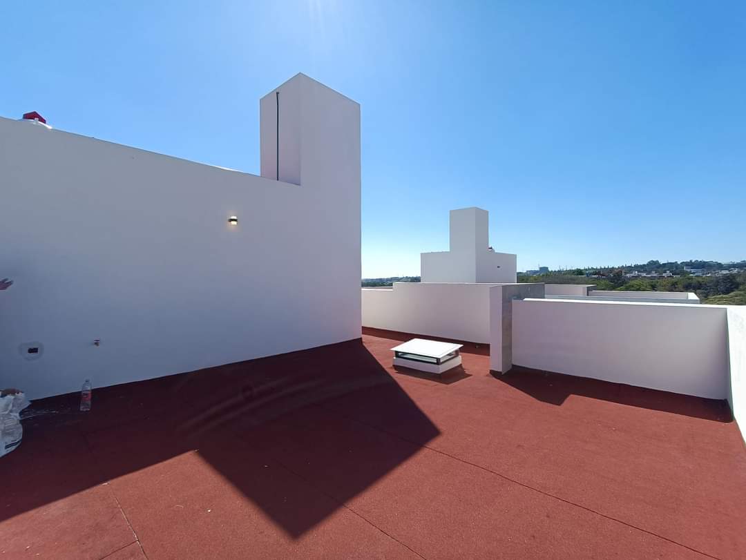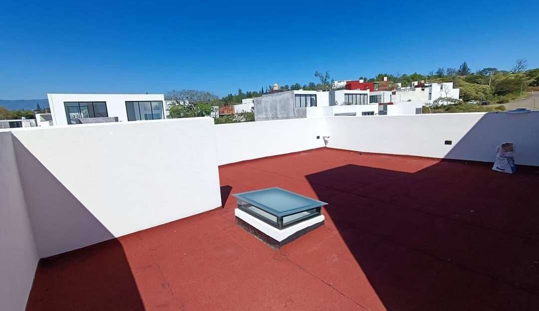 La azotea incluye un área de servicio techada, maximizando el uso del espacio. La casa destaca por sus acabados de alta calidad: construcción con tabique de novaceramic, carpintería en madera de encino, cancelería de cristal templado en los baños, preparación para aire acondicionado en las tres recámaras, cisterna, tinaco de 1,100 litros con presurizador, tanque estacionario de gas, e impermeabilización con carpeta asfáltica de 3.5mm, además de zoclo de madera en toda la casa.