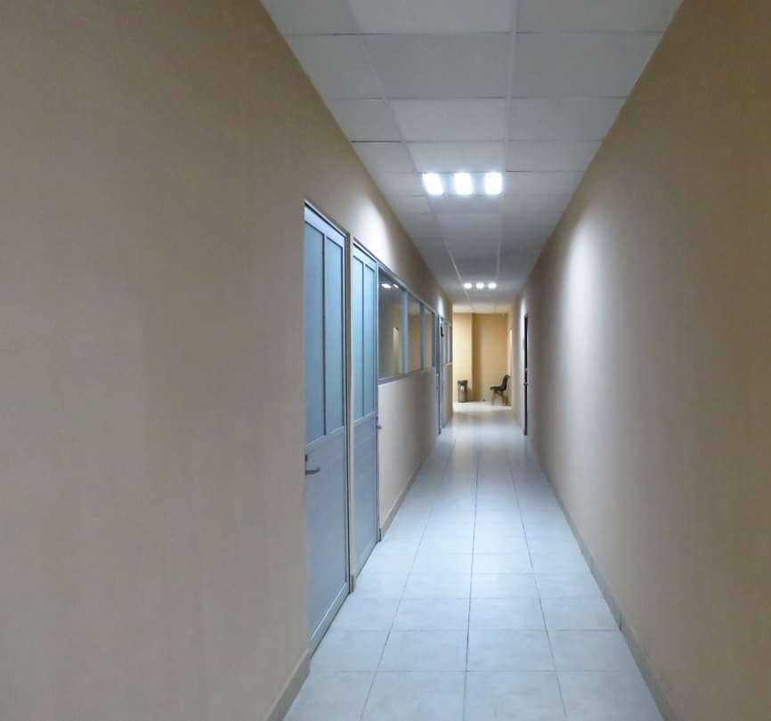 Primer Nivel: Baños para hombres y mujeres, 12 consultorios de aproximadamente 2.5 x 3m cada uno, y sala de espera.