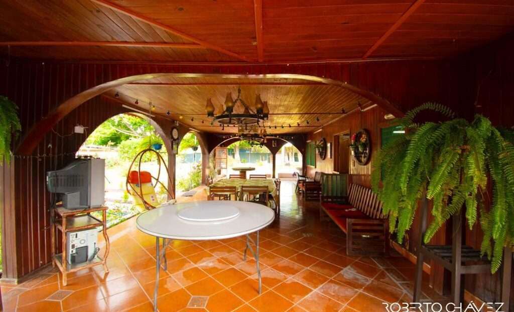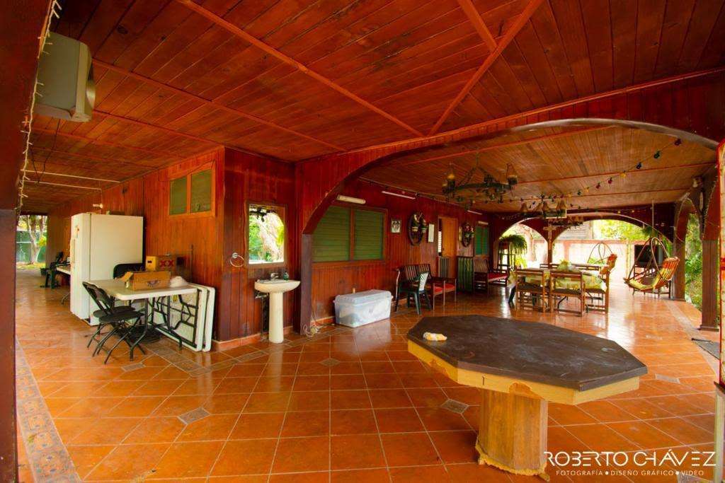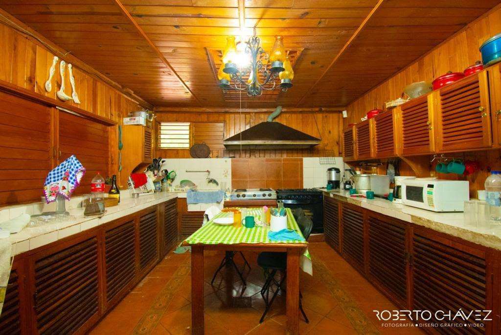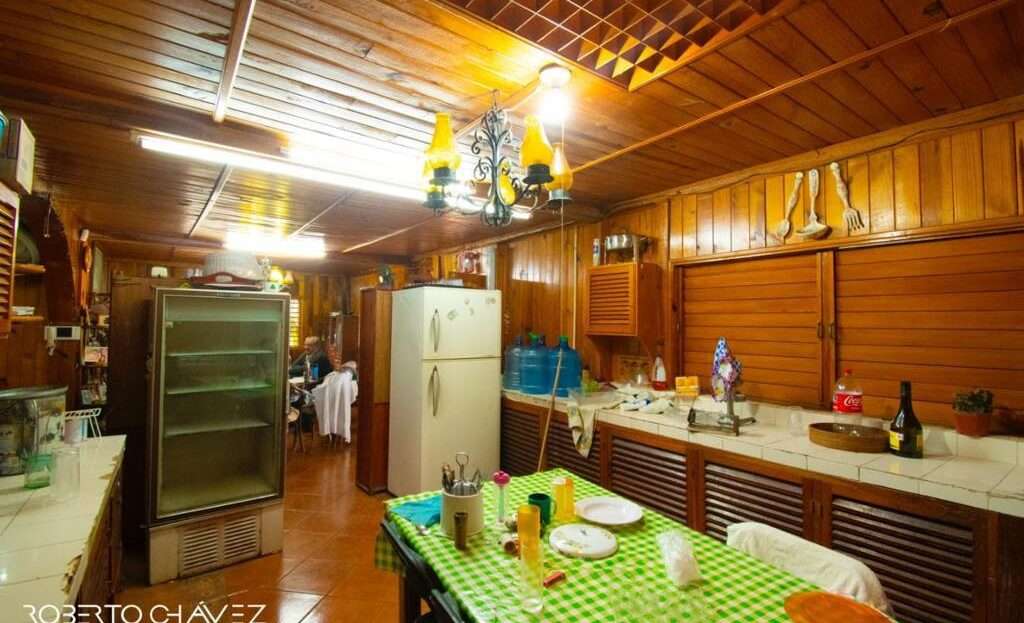 Sala, comedor y cocina amueblados con elegancia, incluyendo electrodomésticos y utensilios para hasta 50 personas.
