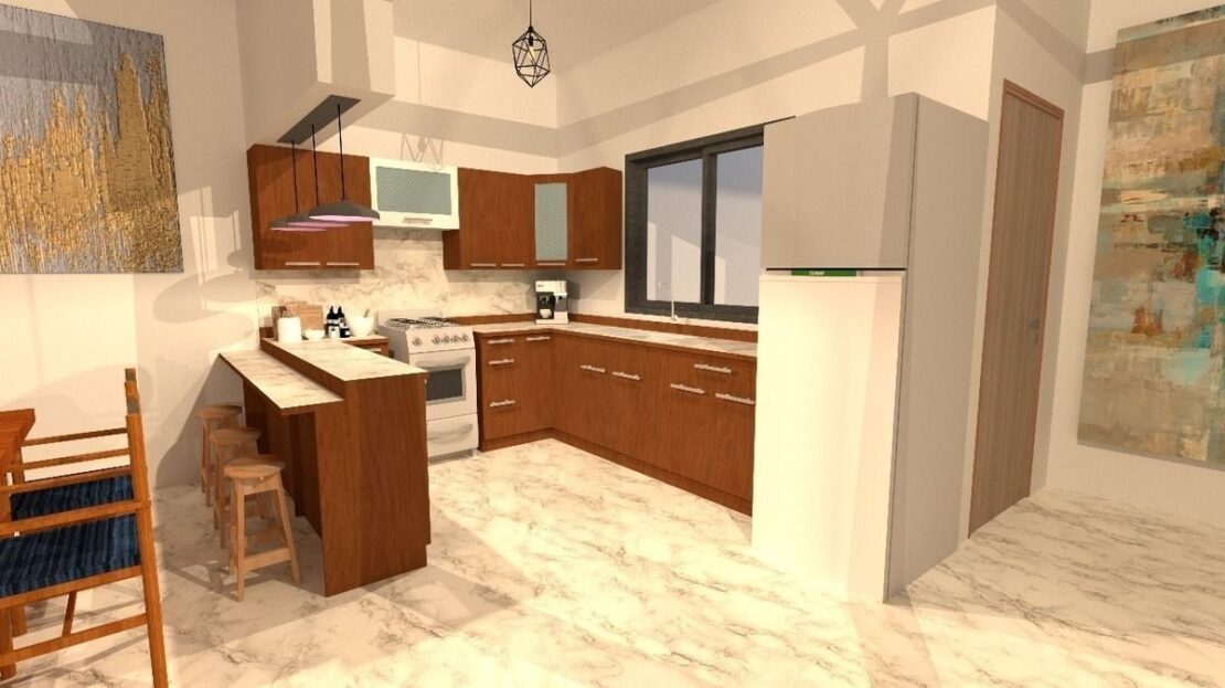 Al ingresar, serás recibido por una elegante sala y comedor con iluminación natural, perfectos para convivencias familiares. La cocina moderna y funcional se convierte en el corazón del hogar, con acabados de alta calidad y un diseño pensado para facilitar la vida diaria. En la planta baja, también encontrarás una recámara con baño completo, ideal para visitas o personas mayores, así como un medio baño para mayor comodidad. En el exterior, el garaje para dos autos y un patio amplio con área de lavado techada complementan este nivel.