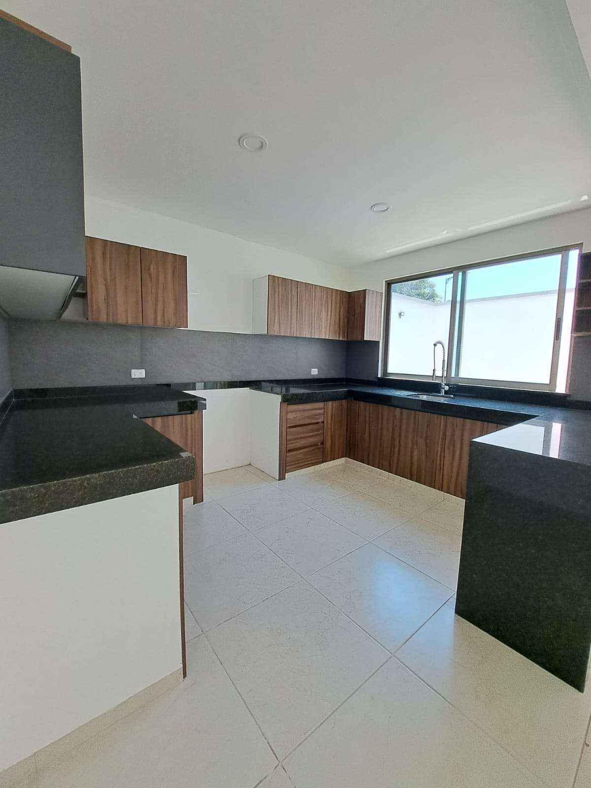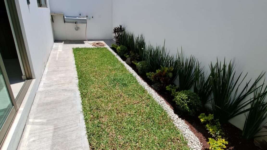La planta baja es un compendio de diseño y funcionalidad, con cochera para dos autos, sala, comedor, y una cocina integral con barra de granito elegante. También incluye un medio baño y un jardín acogedor con área de servicio.